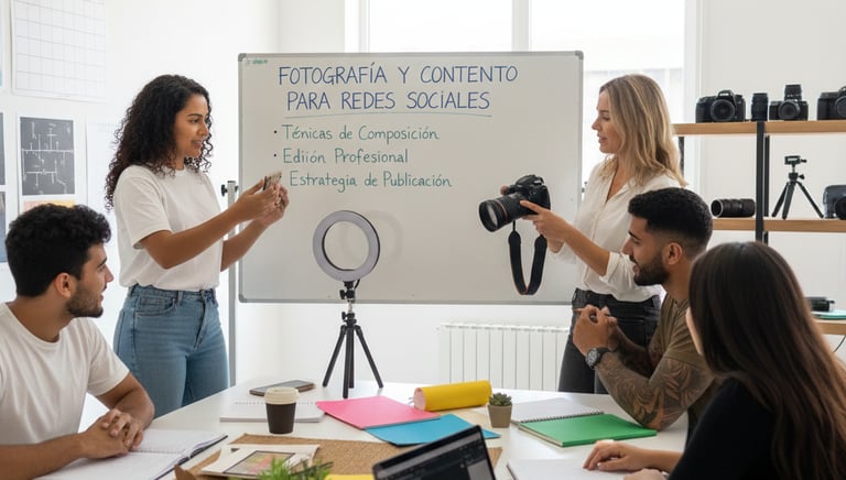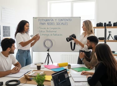 Este curso enseña las técnicas esenciales de fotografía y la creación de contenido visual estratégico para potenciar la presencia en las redes sociales